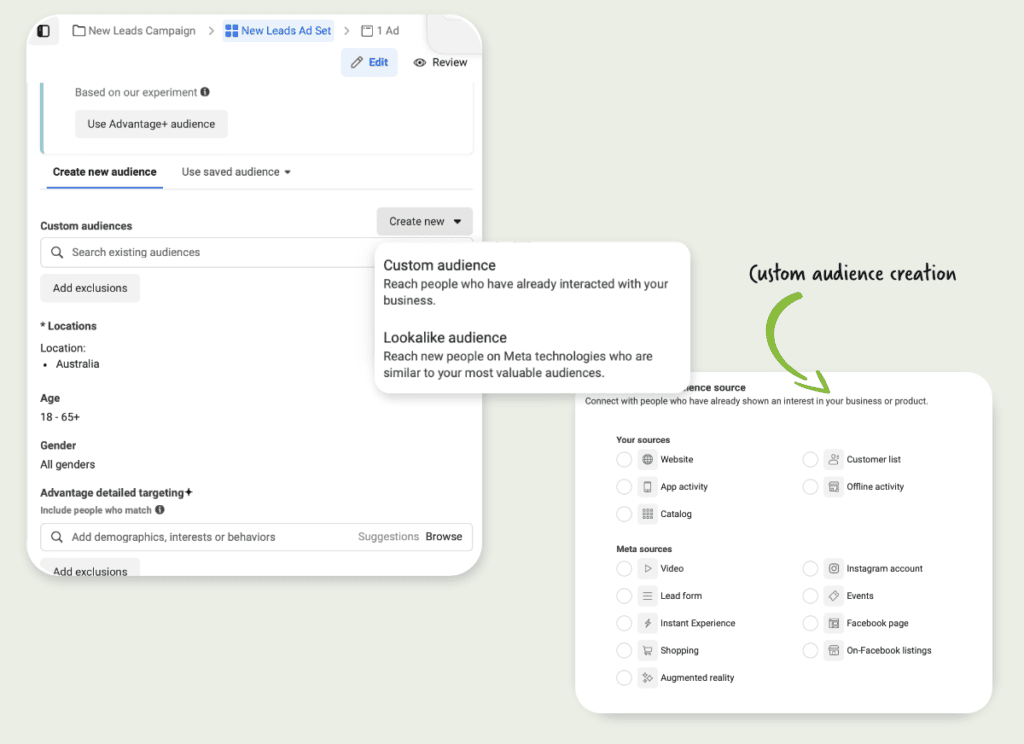 - Select 'Custom Audience'
